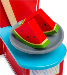 Les couleurs vives et les détails de la pastèque incitent les enfants à la prendre en main et à inventer des jeux de rôle dans la cuisine ou la boutique.