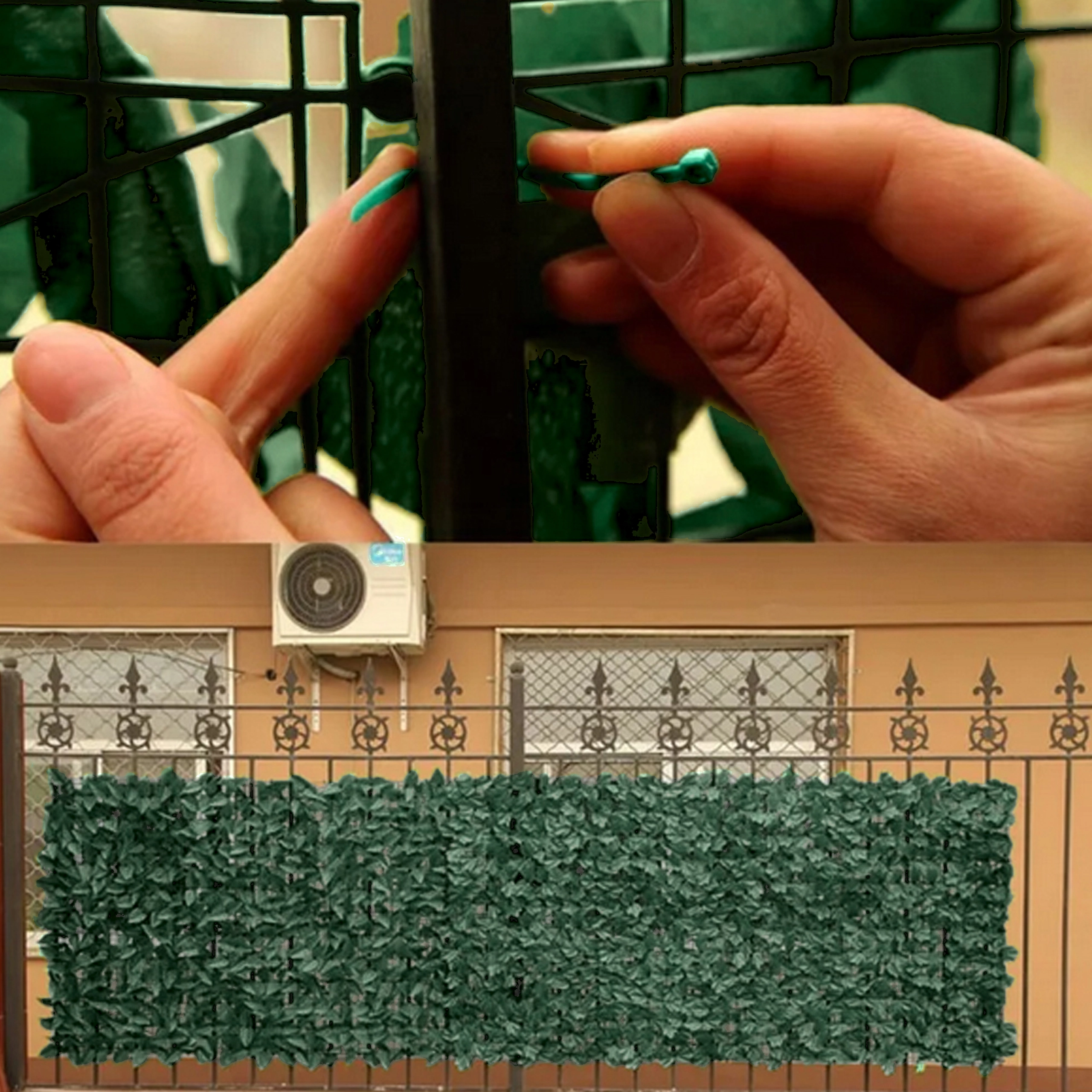 L’installation est simple : fixez le panneau/rouleau à la clôture ou au garde-corps à l’aide de colliers de serrage ou de fils. Grâce à la conception modulaire, les panneaux se raccordent pour couvrir de grandes surfaces. Le lierre artificiel ne requiert aucun entretien, ne perd pas ses feuilles et conserve un aspect frais toute l’année.