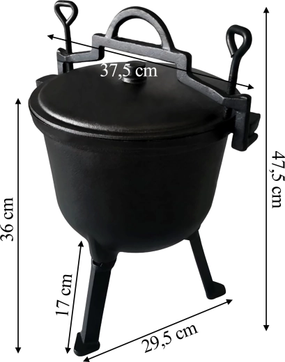 La base stable à trois points permet de placer le chaudron directement dans le foyer ou au-dessus des braises. C’est un excellent choix pour le camping, les réceptions au jardin et les sorties de pêche. La fonte est naturellement résistante et gagne en propriétés antiadhésives à chaque utilisation.