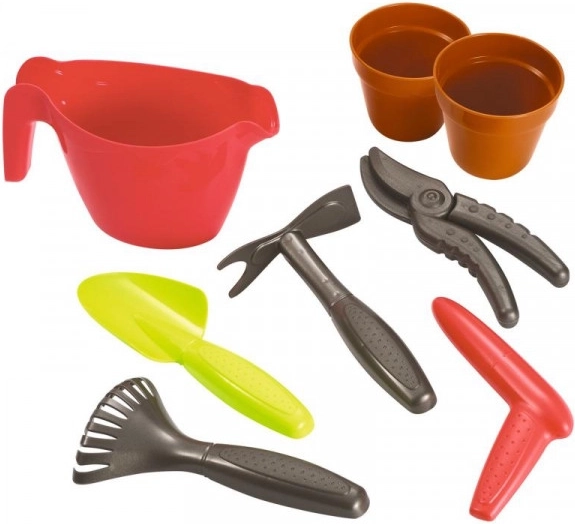- Équipement complet – pots de fleurs, arrosoir et outils de jardinage de base pour enfants.