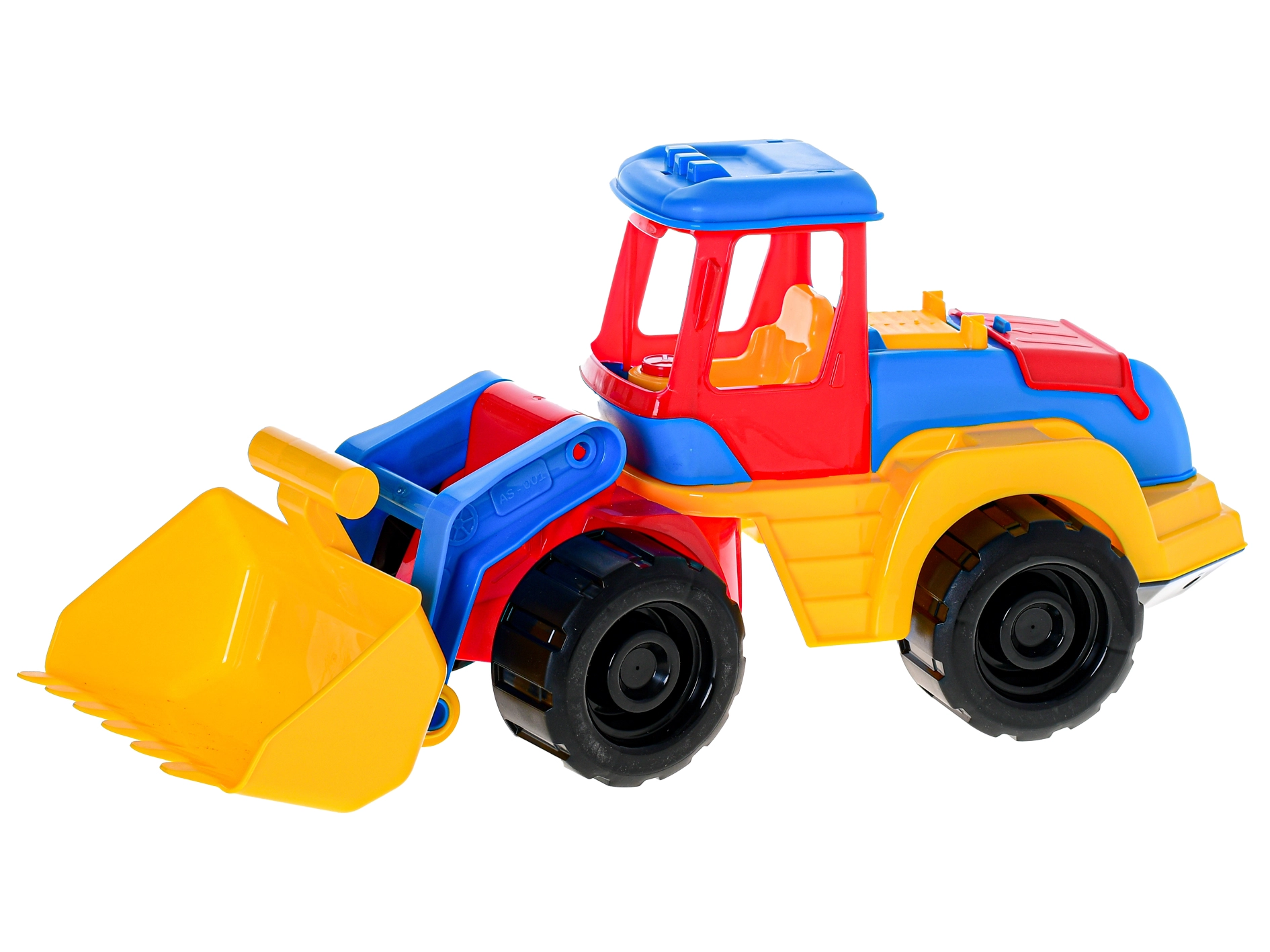 Ce tracteur chargeur robuste est un excellent compagnon de jeu créatif. Grâce à sa benne avant mobile, les enfants ramassent facilement sable, cailloux ou briques, développant ainsi leur motricité fine et leur imagination. Les grandes roues tout-terrain garantissent un mouvement fluide sur le sable comme sur le sol.