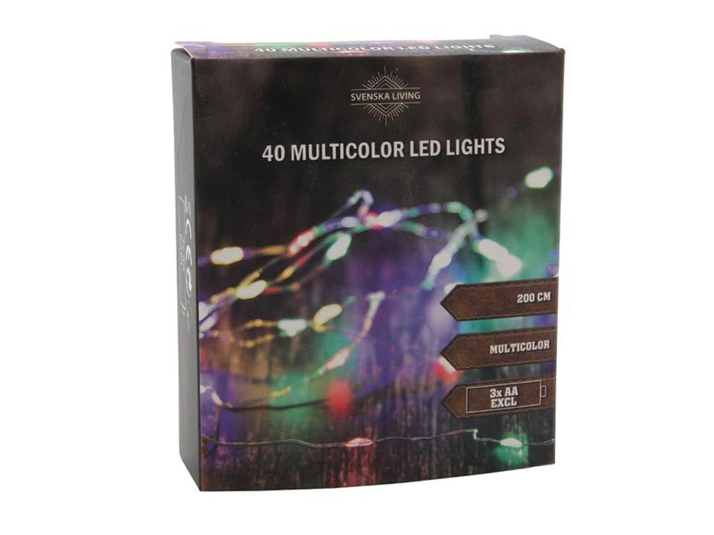 Illuminez votre intérieur avec cette guirlande lumineuse multicolore de 2 mètres. Elle offre 40 LED lumineuses, une alimentation pratique à piles et une installation facile sans câbles – idéale pour la décoration intérieure, les moments festifs et une ambiance chaleureuse.
