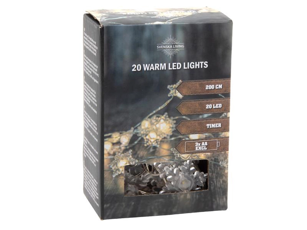 Guirlande lumineuse avec minuterie, 20 LED flocons, 200 cm