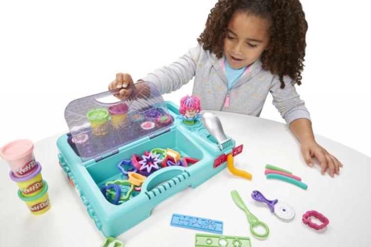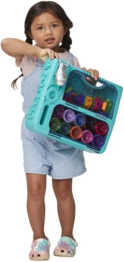 Dans ce coffret de voyage polyvalent, les enfants trouveront de nombreux accessoires et les pots classiques de pâte à modeler Play-Doh ! Vous y découvrirez la Fabrique à fun et le Salon de coiffure, ainsi qu’une multitude d’emporte-pièces et d’astuces en tout genre, alors n’hésitez pas à laisser libre cours à votre imagination. Il y a beaucoup de place pour tout : vous pouvez mettre les pots de pâte dans les ouvertures prévues, ranger les outils et les emporte-pièces dans le compartiment doté d’un couvercle texturé, avec lequel vous vous amuserez à créer de superbes motifs. L’ensemble est pratique et complet : tout le nécessaire y tient, et grâce à sa poignée compacte, vous pouvez l’emporter facilement en voyage pour égayer, par exemple, un week-end chez mamie !