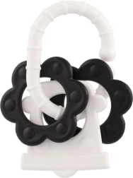 Découvrez des anneaux de dentition conçus spécialement pour les tout-petits – le contraste noir et blanc attire l’attention de bébé et aide à stimuler la perception visuelle. Grâce à la poignée pratique, l’anneau se tient bien dans les petites mains et le hochet offre une douce stimulation sonore.