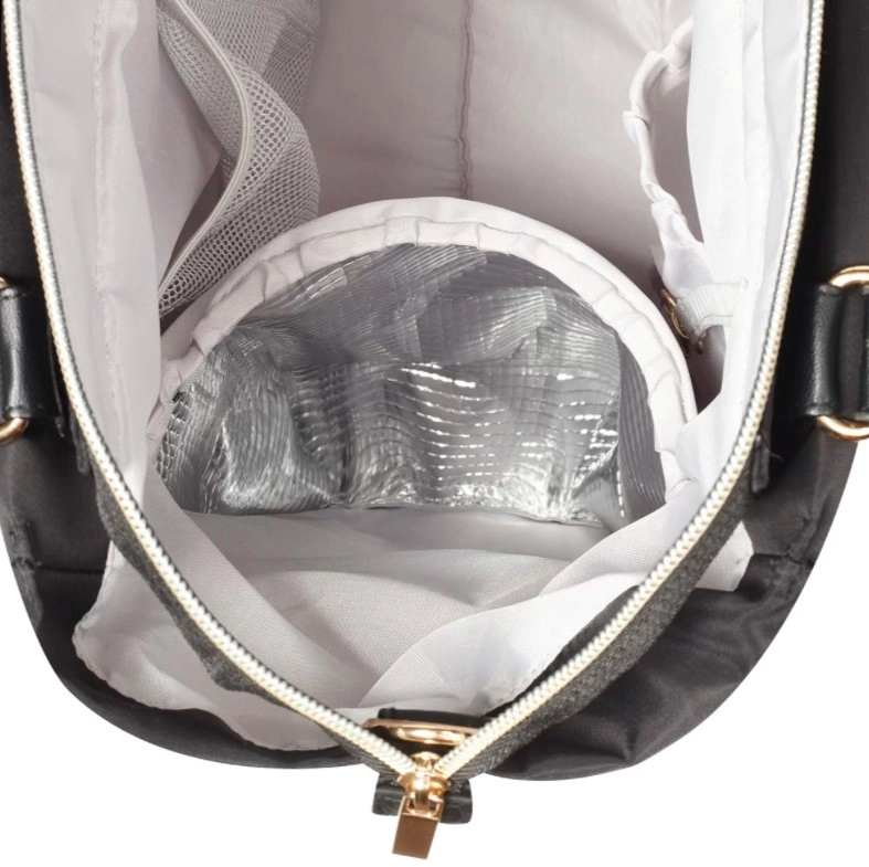 La poche isotherme intégrée aide à maintenir la température souhaitée des repas et des boissons de bébé pendant les déplacements.