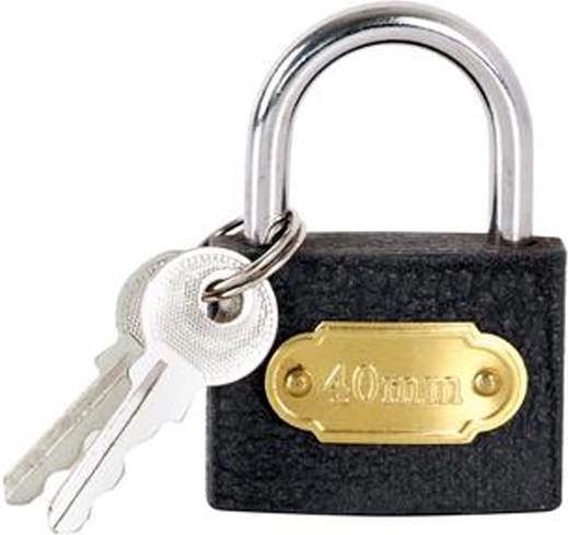 Cadenas universel de 40 mm de large en acier de qualité pour sécuriser de manière fiable des casiers, conteneurs et box de cave. Offre une construction robuste, une rotation de clé fluide et est livré avec 2 clés pour une utilisation pratique.
