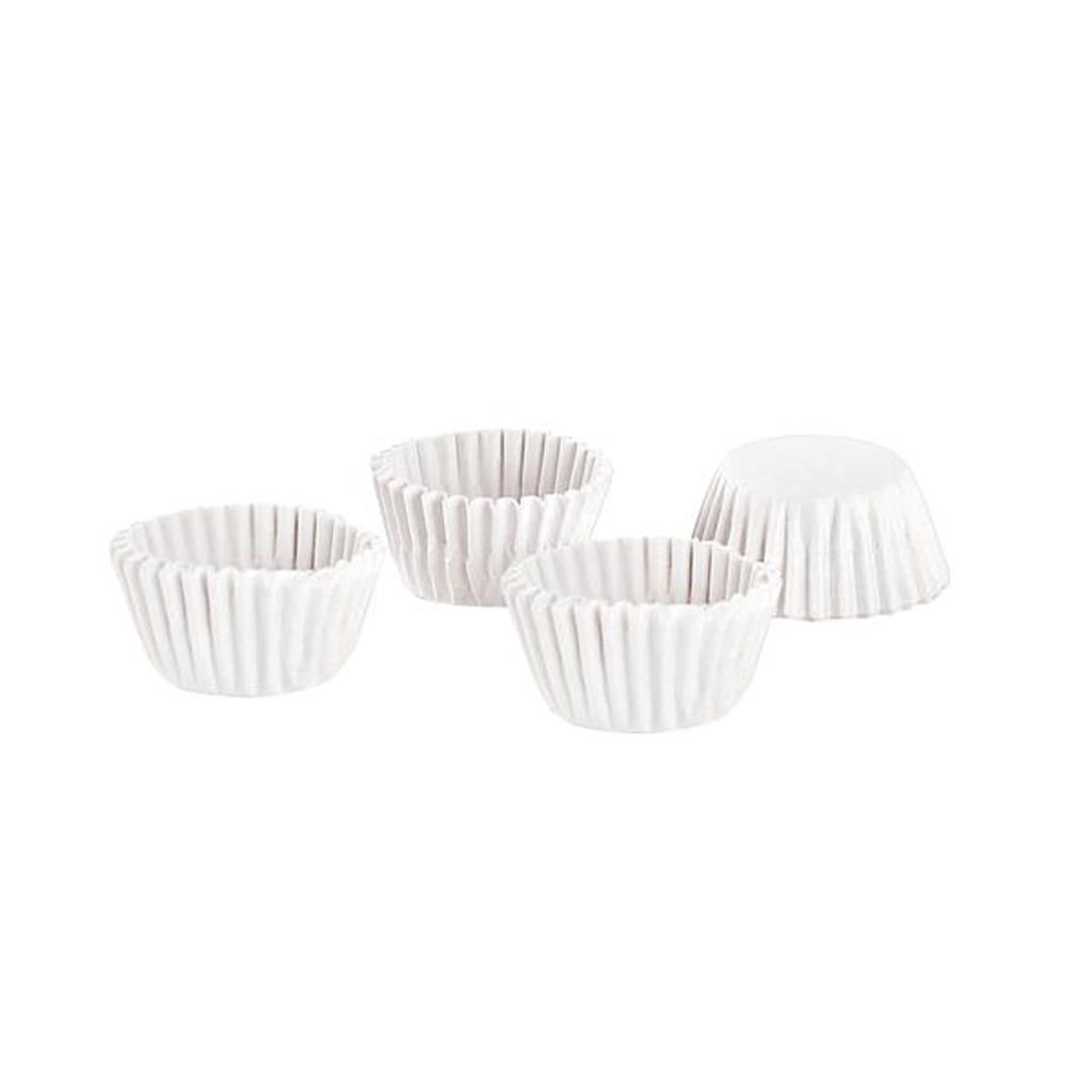 Caissettes en papier blanches pour mini muffins TORO en papier alimentaire robuste, idéales pour la cuisson des mini muffins et le service de petites pâtisseries. L’emballage contient 100 pièces au même motif qui, grâce à la qualité du matériau, gardent bien leur forme et facilitent la cuisson ainsi qu’un service élégant.