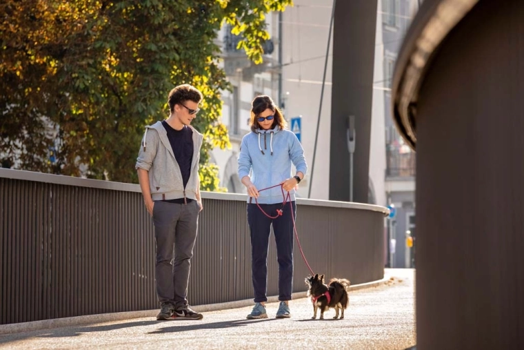 Le design step‑in intuitif permet une mise en place et un retrait faciles. La boucle rembourrée protège le pelage des pincements, les matériaux robustes supportent une traction jusqu’à 100 kg et les éléments réfléchissants améliorent la visibilité au crépuscule. En été, il suffit d’immerger le harnais dans de l’eau froide pour un agréable refroidissement. Inclus : DogFinder ID pour l’enregistrement en ligne, utile en cas de perte du chien.