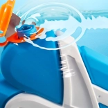 Tire deux jets d’eau depuis un canon rotatif, créant des effets fascinants.