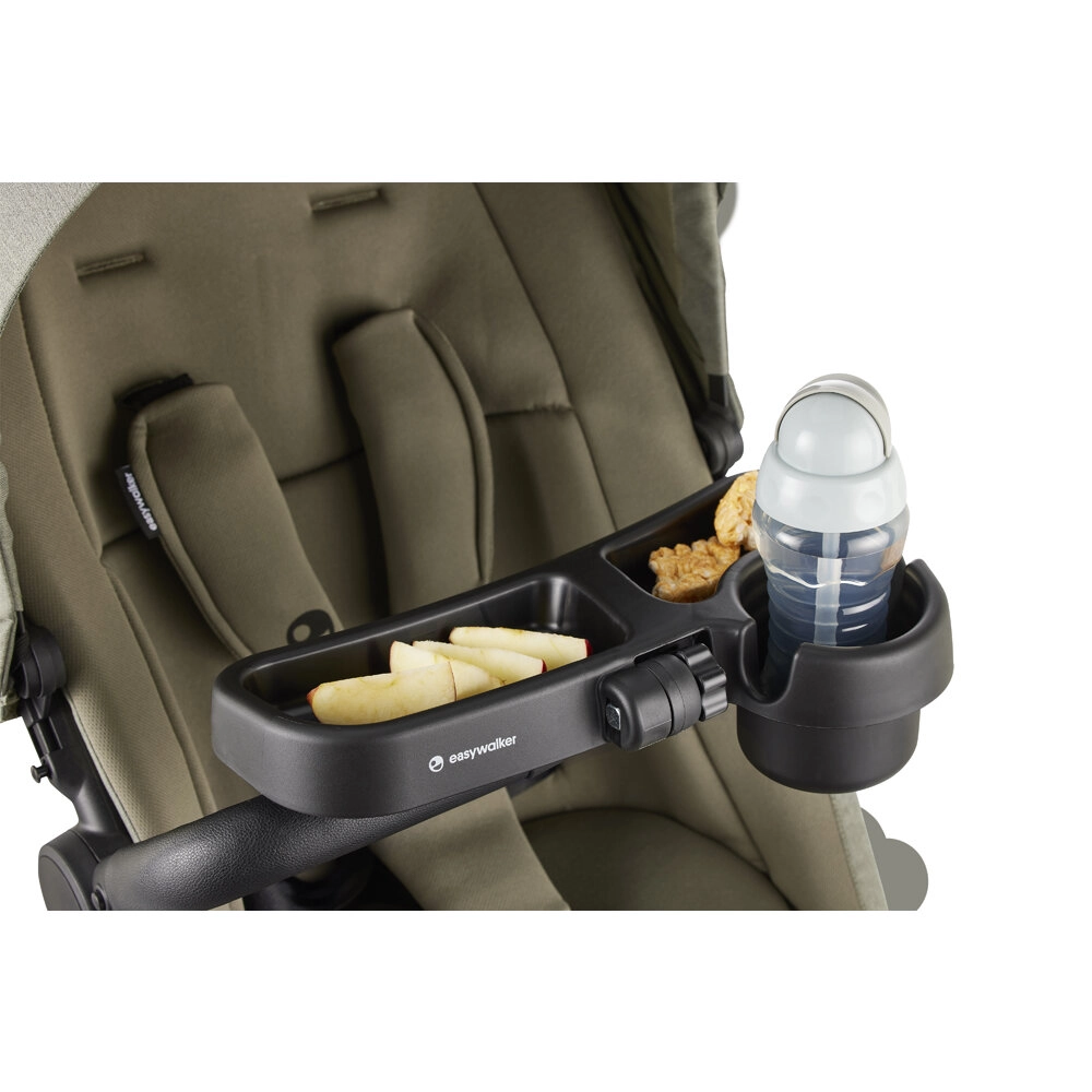 Le plateau-repas pratique pour poussettes EASYWALKER offre aux enfants un espace confortable et sûr pour poser leur collation, leurs boissons et leurs petits jouets. Il est sans BPA, compatible lave-vaisselle et se fixe rapidement d’un seul clic sur les arceaux compatibles des poussettes.