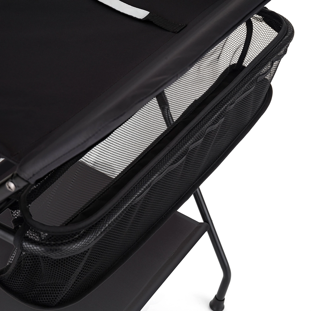 Les poches latérales en mesh et l’étagère inférieure gardent tous les indispensables bien organisés et accessibles d’une seule main.