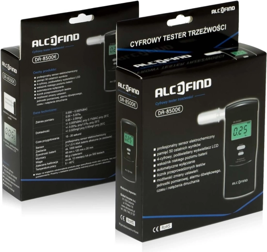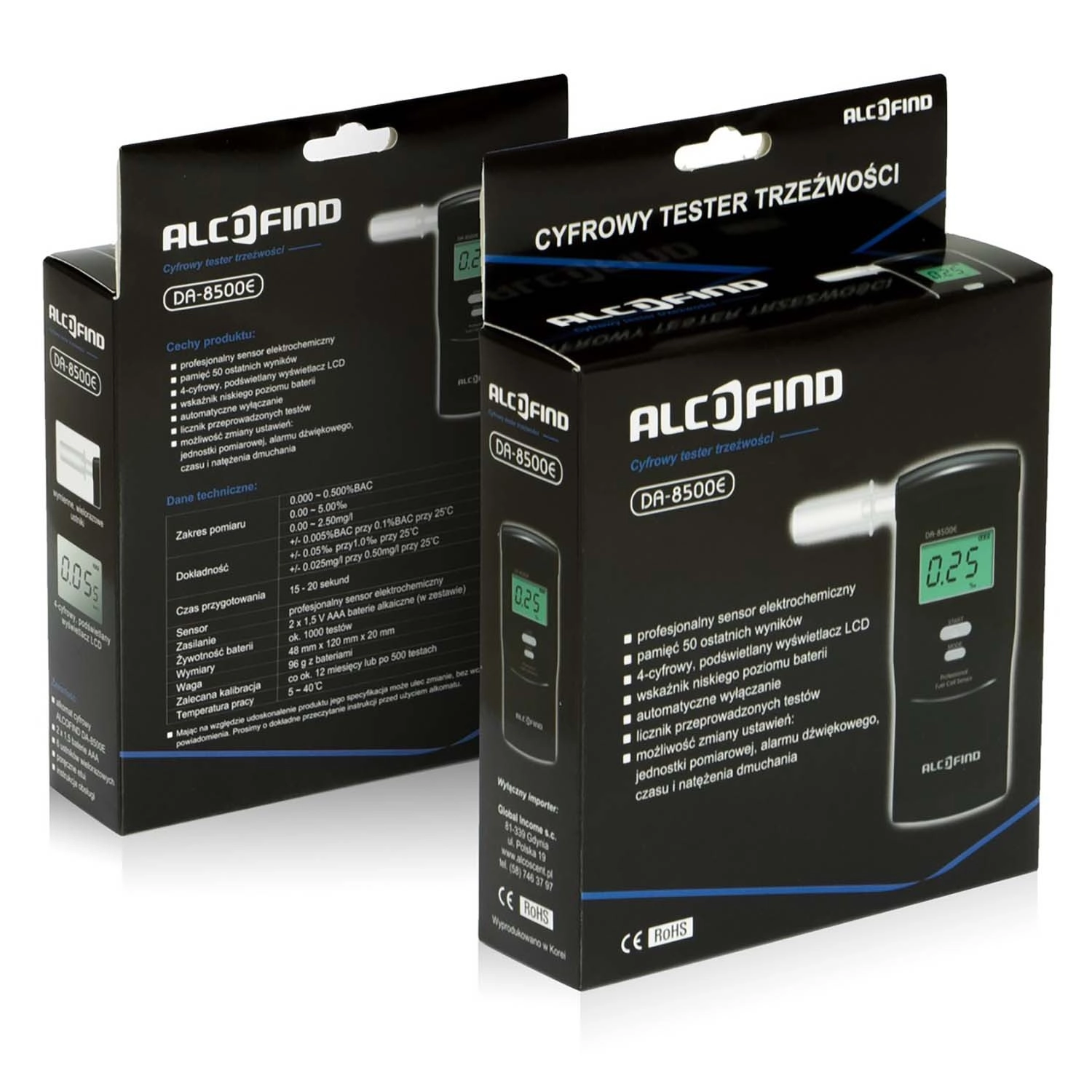 - Alcootest DA-8500E, étui, 2× AAA, 6× embout réutilisable, 100× embout jetable, notice CZ, coffret cadeau, carte de garantie, étalonnage gratuit dans les 12 mois