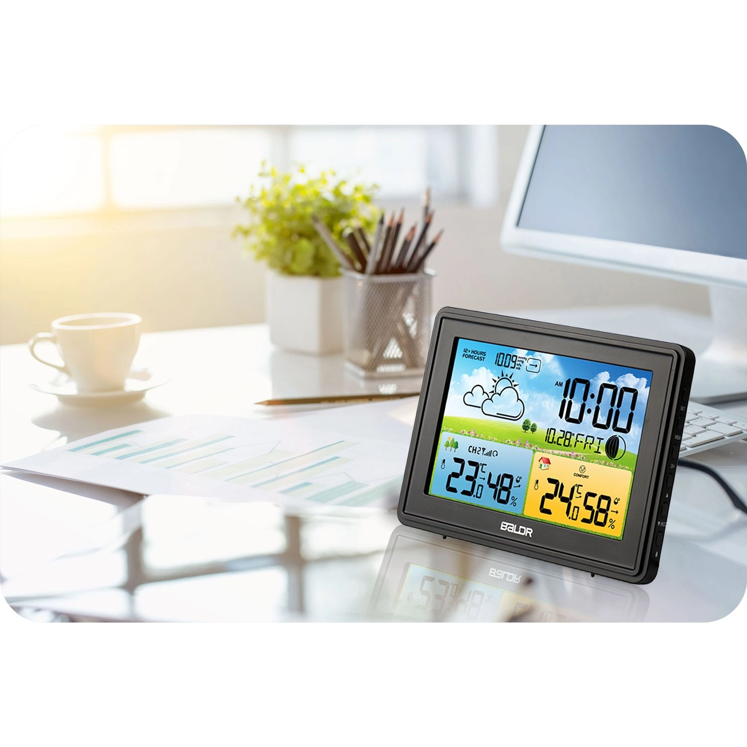 Station météorologique numérique avec écran couleur et DCF77, noir