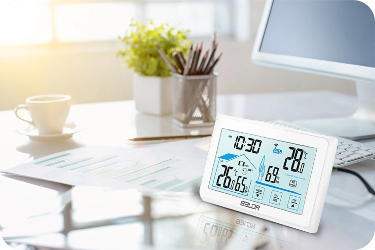 Cette station météo blanche moderne associe mesures précises et écran clair pour un aperçu instantané du climat intérieur et extérieur. Suivez la température, l’humidité, les icônes de tendance et la zone de confort pour maintenir facilement un environnement intérieur sain. La synchronisation automatique avec le capteur et la possibilité d’ajouter d’autres canaux assurent une surveillance flexible.