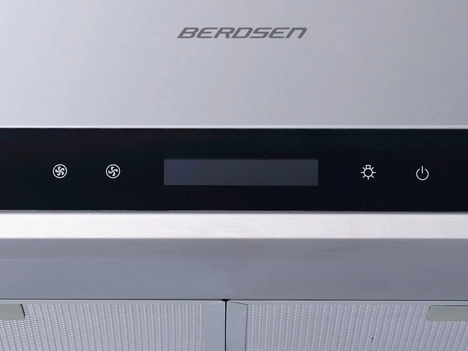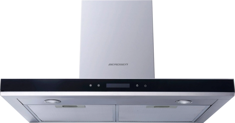 La hotte propose 3 vitesses, un débit maximal de 335 m3/h et un éclairage LED 2 × 1 W pour illuminer clairement la zone de cuisson. Les commandes tactiles avec affichage assurent un grand confort d’utilisation, et les caches de cheminée télescopiques permettent un raccordement d’extraction net. Elle peut fonctionner en évacuation ou en recyclage avec le filtre à charbon BERDSEN TYPE‑E en option.