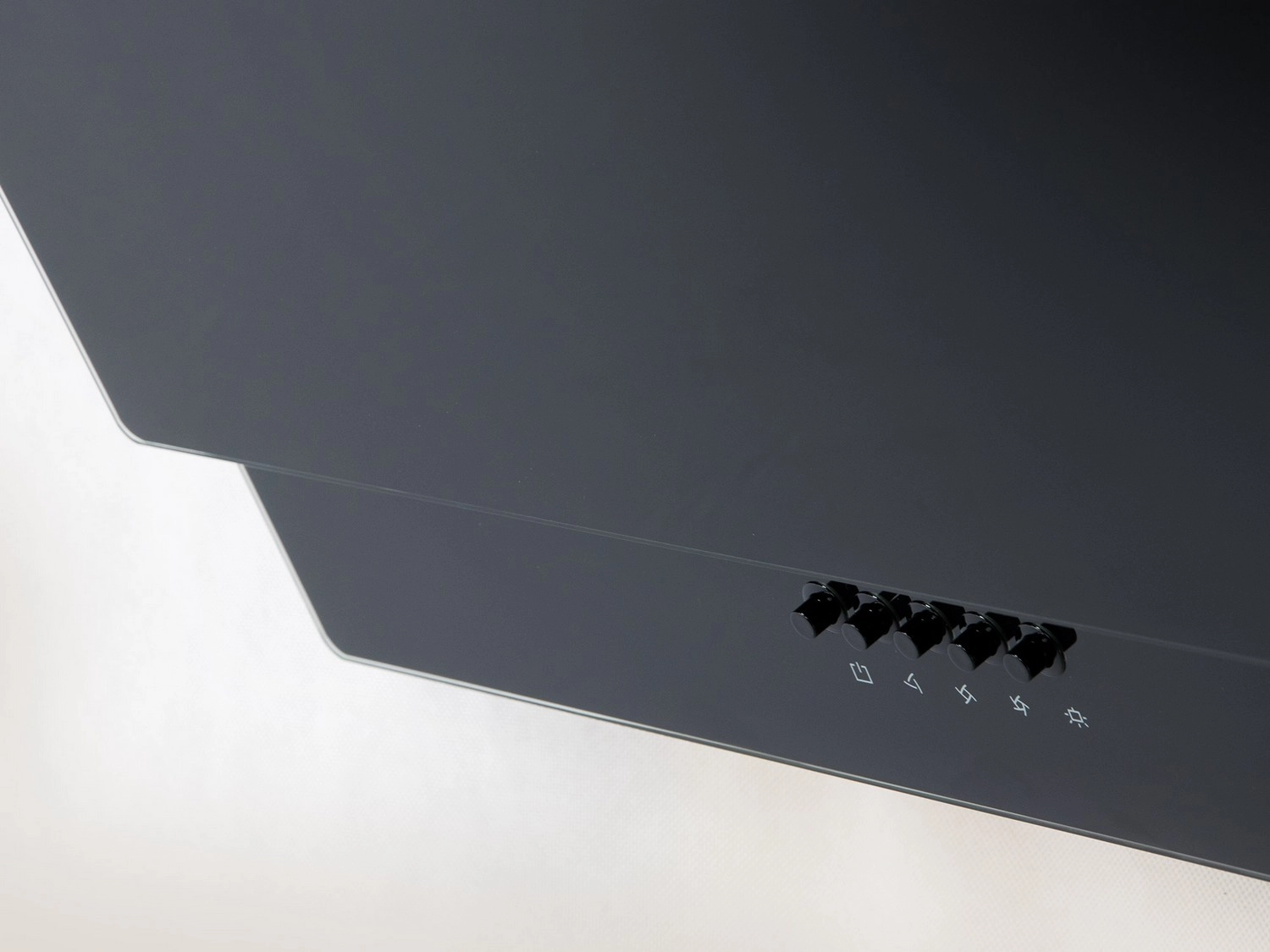 La surface noire brillante en verre trempe9 apporte une touche moderne e0 la cuisine et permet un acce8s facile aux filtres et aux commandes.