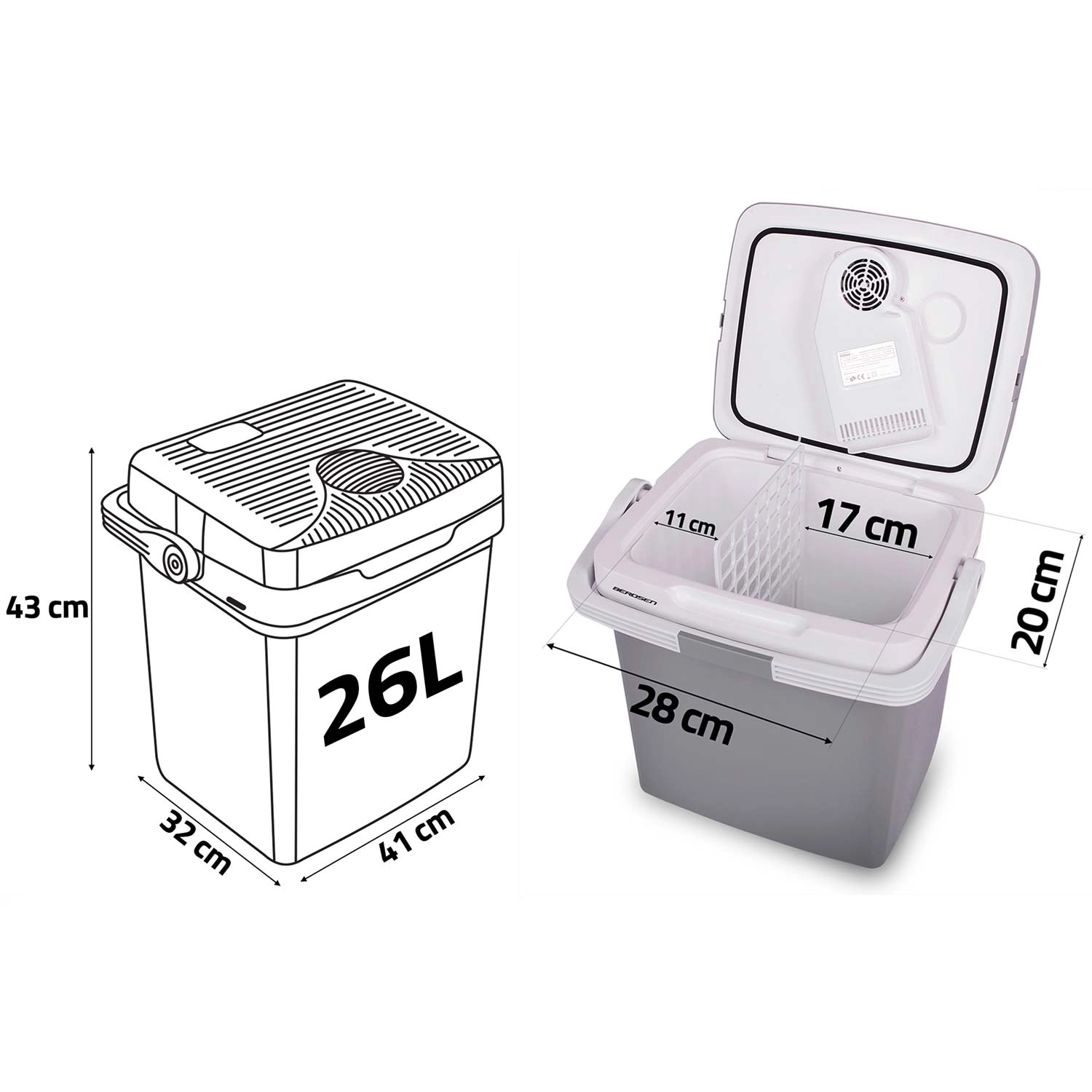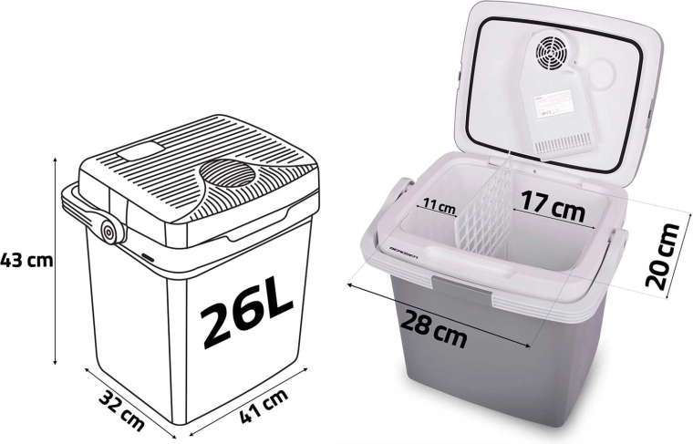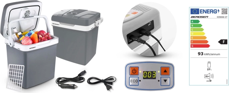 Grâce à l’alimentation en 12 V (voiture) et 230 V (secteur), elle est prête à l’emploi partout. Le ventilateur intégré fait circuler l’air pour un refroidissement homogène du contenu et le joint du couvercle avec une sécurité intégrée à la poignée aide à maintenir une température stable. Une grille de séparation est incluse pour une meilleure organisation des aliments – idéale pour les fruits, les boissons ou les en-cas.