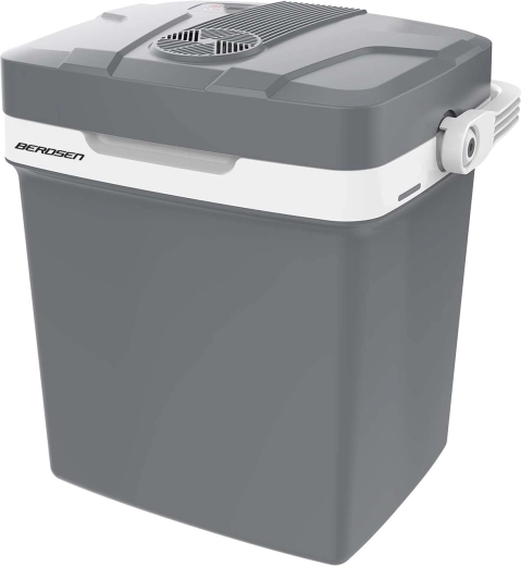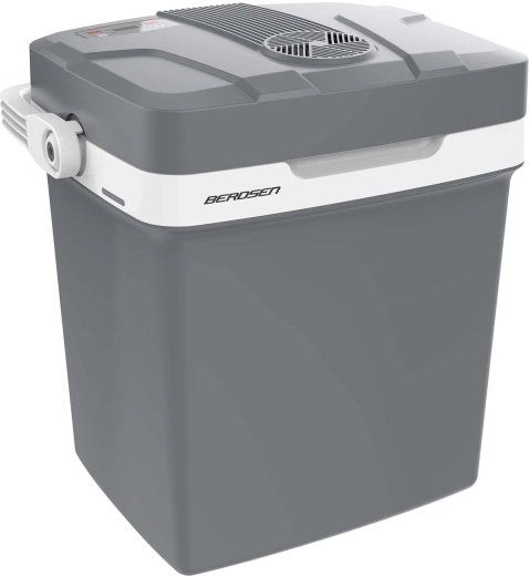 Glacière de voyage légère avec fonction refroidissement et chauffage et un volume de 26 litres pour garder aliments et boissons à la température idéale en déplacement. Elle offre un affichage électronique avec réglage de la température cible, des modes ECO et Normal, une alimentation 12 V pour voiture et 230 V sur secteur et un fonctionnement silencieux de 39 dB. Grâce au ventilateur intégré, le refroidissement est homogène et la poignée pliante facilite le transport.