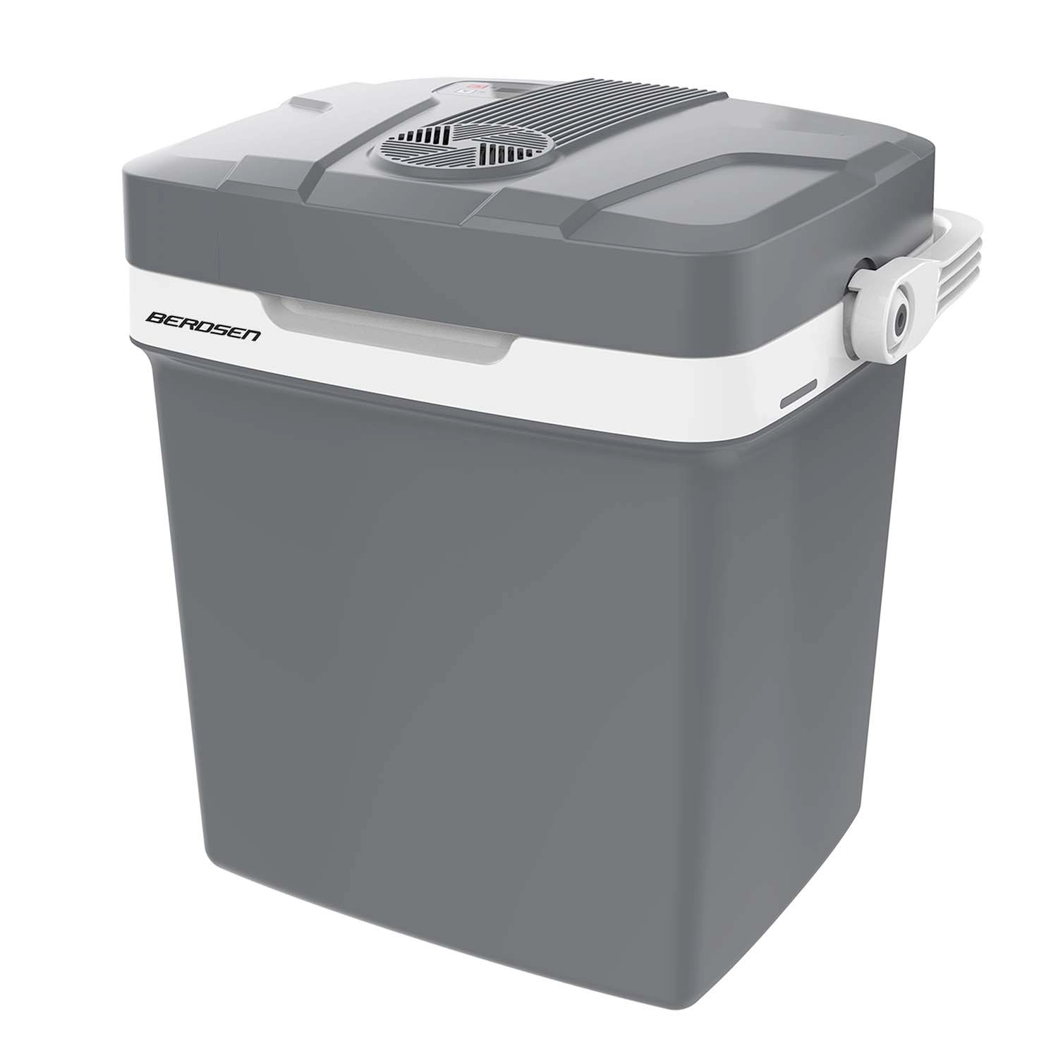 Le ventilateur intégré assure la circulation de l’air, tandis que la poignée pliante et le verrouillage du couvercle facilitent un transport sûr.