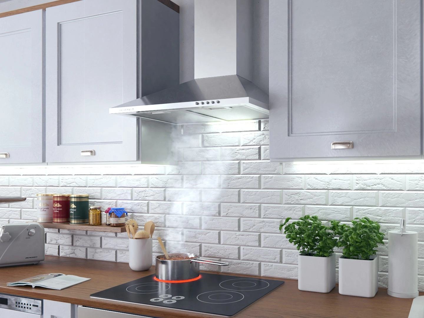 - Débit 350 m³/h – élimination efficace des odeurs et de la vapeur de cuisson.