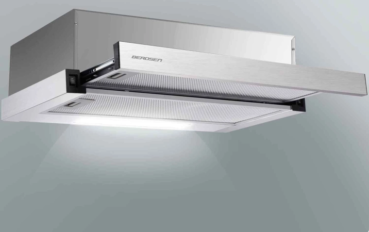Le panneau coulissant élargit la zone de captation des vapeurs uniquement lorsque c’est nécessaire. Une fois rétractée, la hotte reste discrète et peu visible sous le meuble.