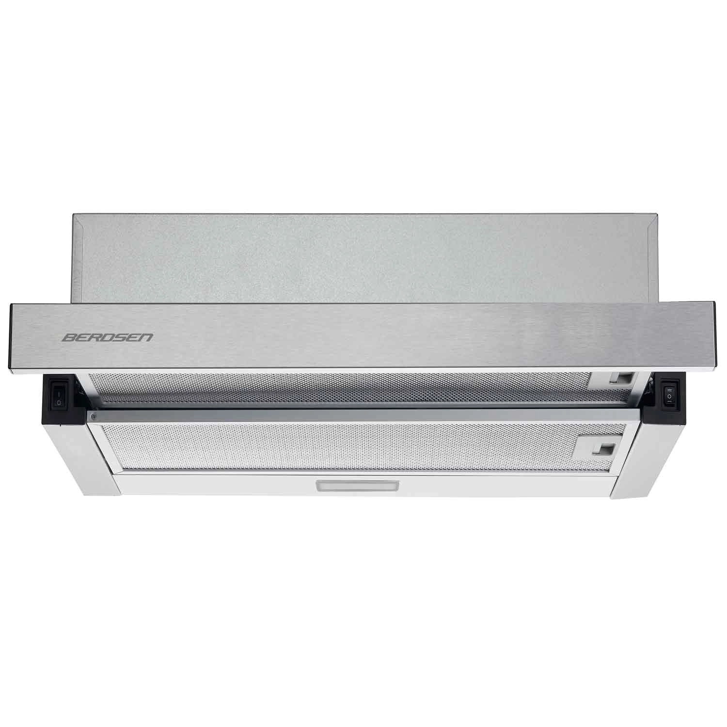 Cette hotte encastrable télescopique économise de l’espace et offre une élégante finition en acier inoxydable qui s’harmonise avec les cuisines modernes. En déployant le panneau avant, elle s’active automatiquement et augmente la surface d’aspiration pour une capture efficace des vapeurs, des odeurs et des graisses. Grâce à deux vitesses, vous adaptez facilement la puissance aux besoins de cuisson.