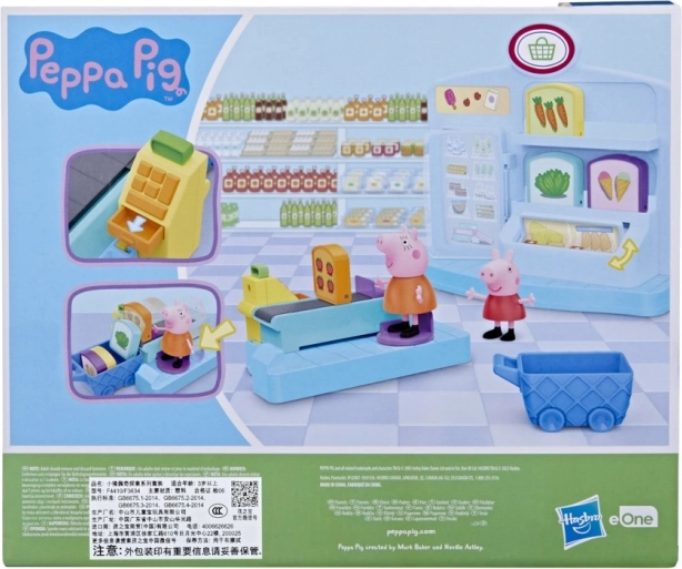 La scène du supermarché propose un réfrigérateur et des cartes rotatives permettant aux enfants de découvrir différents types de produits. Les fonctions réalistes favorisent le développement de la motricité fine, de l’imagination et des jeux de rôle avec les héros préférés de la série Peppa Pig.