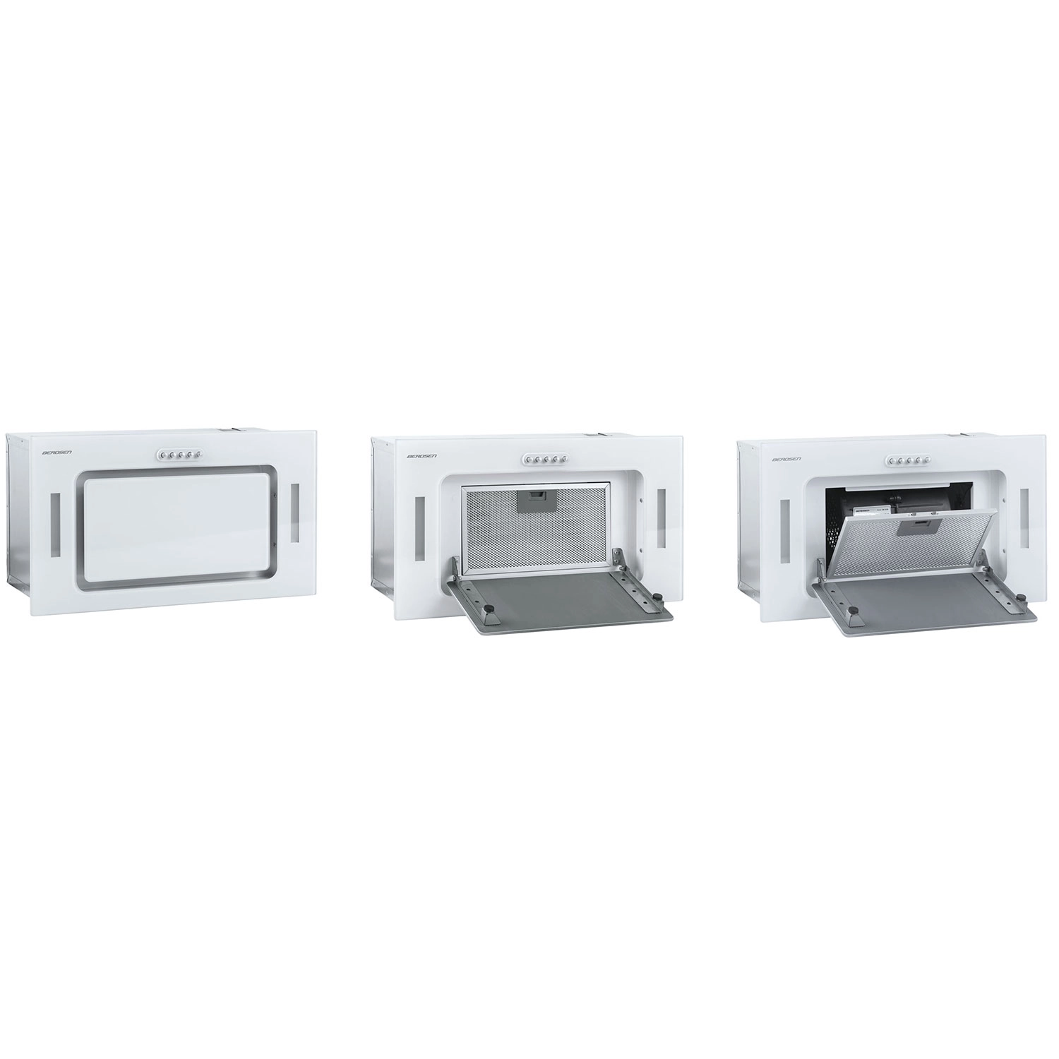 La hotte encastrable sous-meuble compacte BERDSEN BE-52A en blanc avec façade en verre offre un débit élevé jusqu’à 380 m³/h, 3 vitesses, un fonctionnement silencieux et un éclairage LED écoénergétique. Elle peut fonctionner en évacuation ou en recyclage avec filtres à charbon. Le filtre à graisse en aluminium robuste se retire facilement et se lave à l’eau.