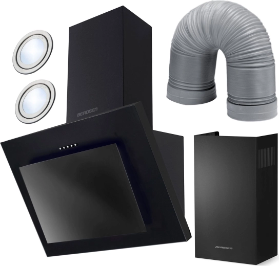La hotte cheminée élégante Berdsen BT-215 d’une largeur de 60 cm associe finition noire, inox et verre trempé. Elle offre 3 niveaux de puissance, deux modes de fonctionnement (évacuation/recirculation), un éclairage LED économe et un commande mécanique par boutons. Grâce à son filtre en aluminium multicouche, elle capte efficacement les graisses et garde votre cuisine propre.