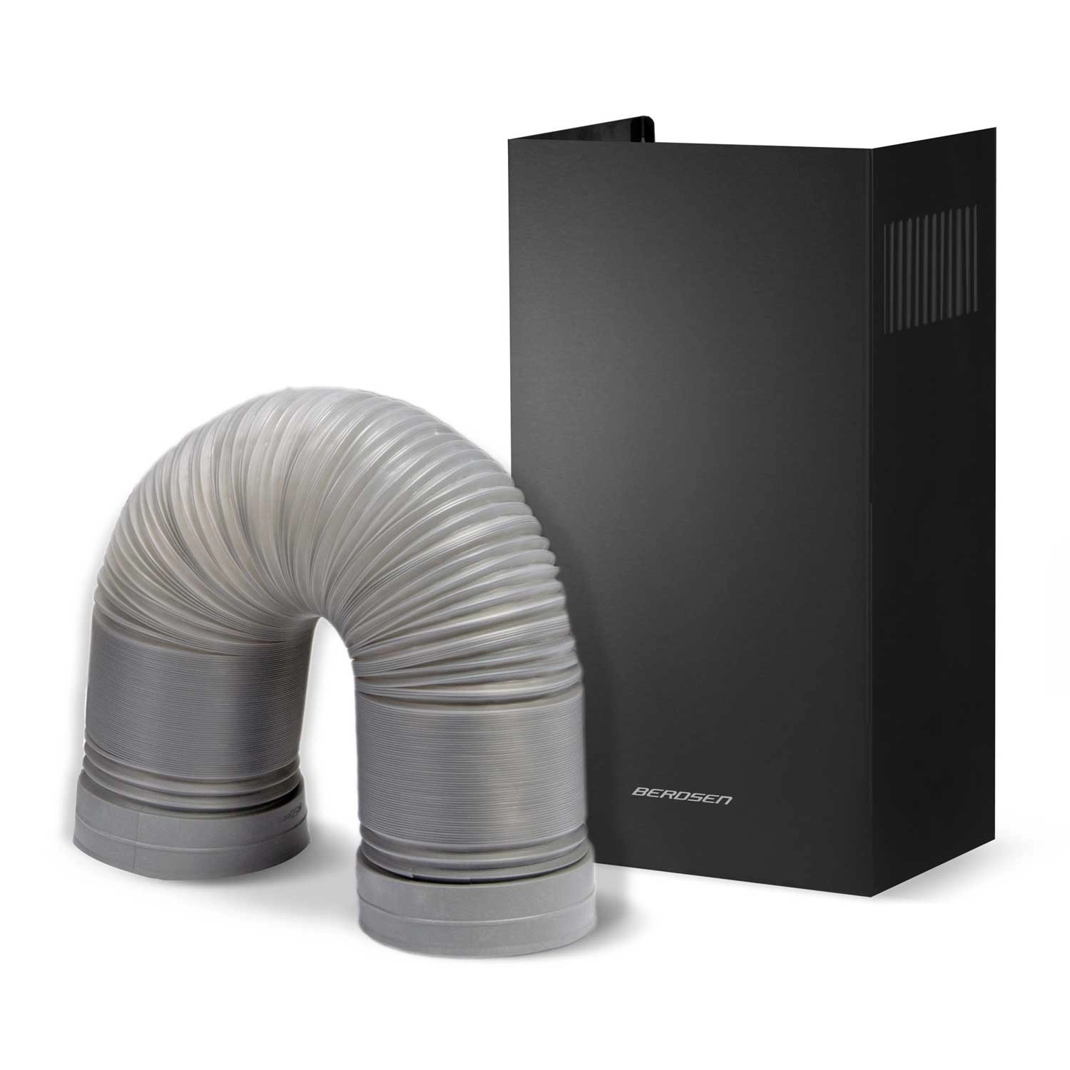 Le colis comprend 2× carter télescopique de cheminée et un tuyau d’évacuation flexible de 2 m – pour un montage rapide et propre dans toute cuisine.
