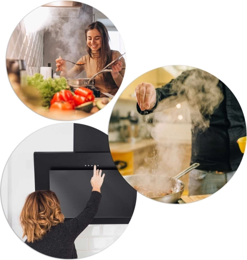 Débit maximal jusqu’à 350 m³/h et réglage à trois vitesses pour éliminer facilement vapeur, odeurs et graisses lors de la cuisine quotidienne.
