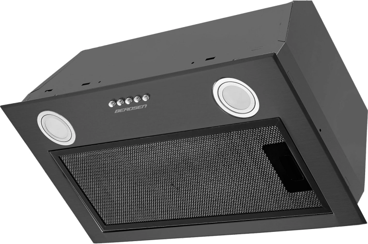 Un filtre à graisses en aluminium renforcé à 5 couches assure un air plus propre, facile à retirer et à nettoyer. L’appareil peut être raccordé en évacuation vers un conduit ou utilisé en mode recyclage avec un filtre à charbon BE‑B en option (non inclus). Trois vitesses et des commandes manuelles à boutons permettent d’adapter confortablement la puissance à vos besoins.