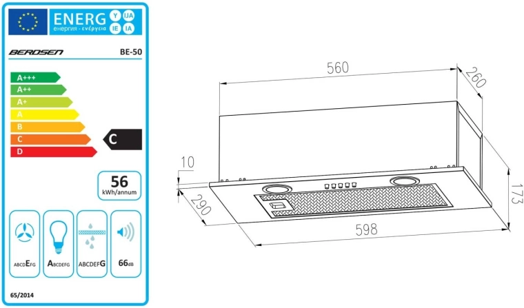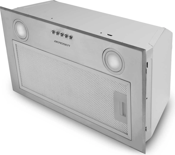 L’éclairage LED intégré à deux points lumineux (2 × 2 W) apporte une lumière claire et naturelle sur la zone de cuisson, tout en étant économe en énergie et durable. Le filtre en aluminium 5 couches retient les graisses et se retire aisément pour le nettoyage. La hotte est prête pour l’évacuation vers un conduit ou le recyclage avec un filtre à charbon BE-B disponible séparément.
