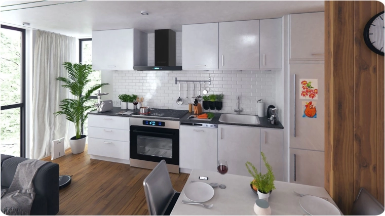 Deux LEDs (2 × 1 W) au rendu naturel éclairent efficacement le plan de travail tout en économisant l’énergie.