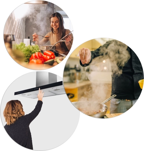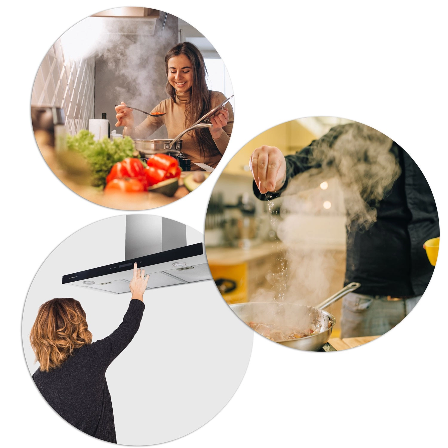 Le moteur de 160 W, avec un maximum de 750 m³/h, évacue rapidement vapeur et odeurs. Choisissez facilement l’un des 3 niveaux de puissance selon votre cuisson.