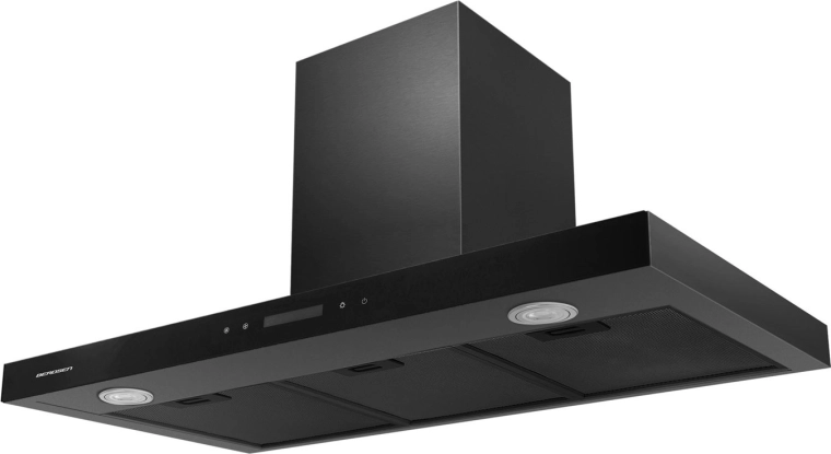 La hotte cheminée Berdsen de 90 cm de large en élégant coloris noir offre un débit maximal jusqu’à 750 m³/h, un réglage à 3 vitesses et un pilotage tactile. Elle fonctionne en deux modes – évacuation ou recyclage, dispose de filtres à graisse en aluminium 3 couches et d’un éclairage LED économe pour une visibilité parfaite sur la table de cuisson.