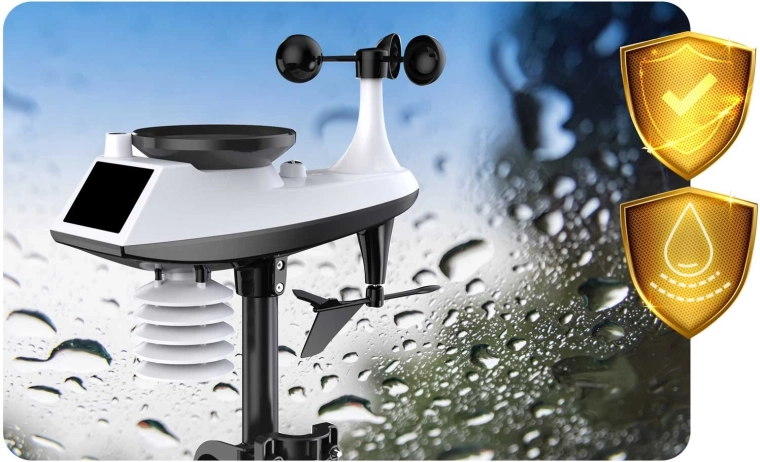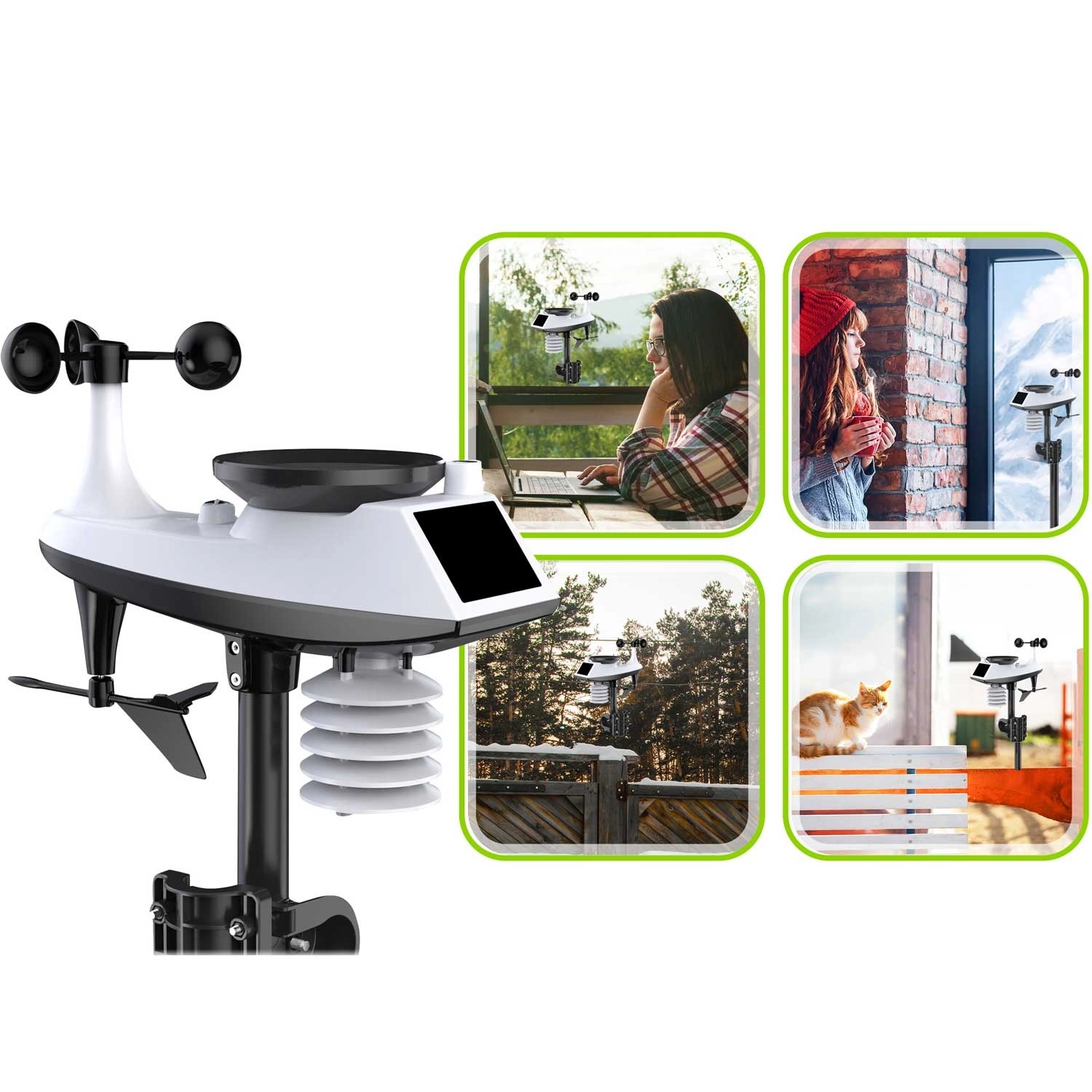 Mesure la vitesse et la direction du vent, le cumul des précipitations, la température et l’humidité extérieures. Transmission sans fil stable jusqu’à 100 m et alimentation assistée par solaire.