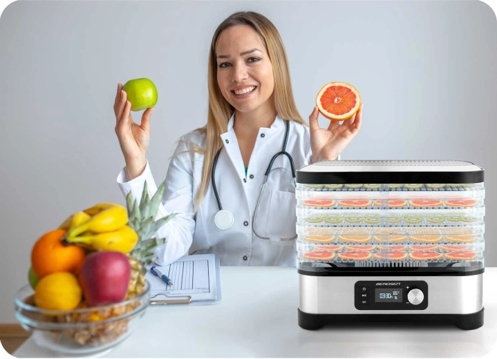 Réglez la durée de séchage selon la recette et laissez l’appareil travailler. La protection contre la surchauffe et la conformité aux normes assurent une utilisation sereine et fiable au quotidien.