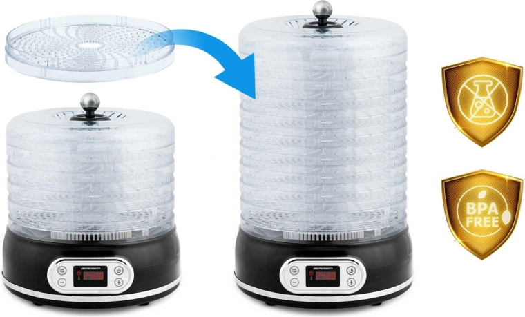 Réalisez des encas sains et savoureux – des anneaux de pomme croustillants aux herbes séchées, jusqu’au jerky maison. Le déshydrateur Berdsen avec commande électronique et écran lisible garantit un réglage précis du temps et de la température. La circulation thermique assure un flux d’air chaud uniforme, pour sécher les tranches efficacement sans les surcuire.