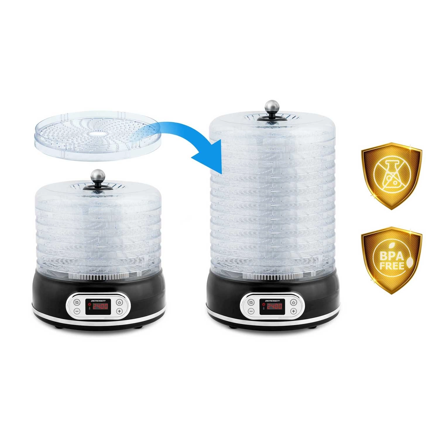- Minuterie numérique 1–72 h – réglez et laissez le déshydrateur travailler pour vous.