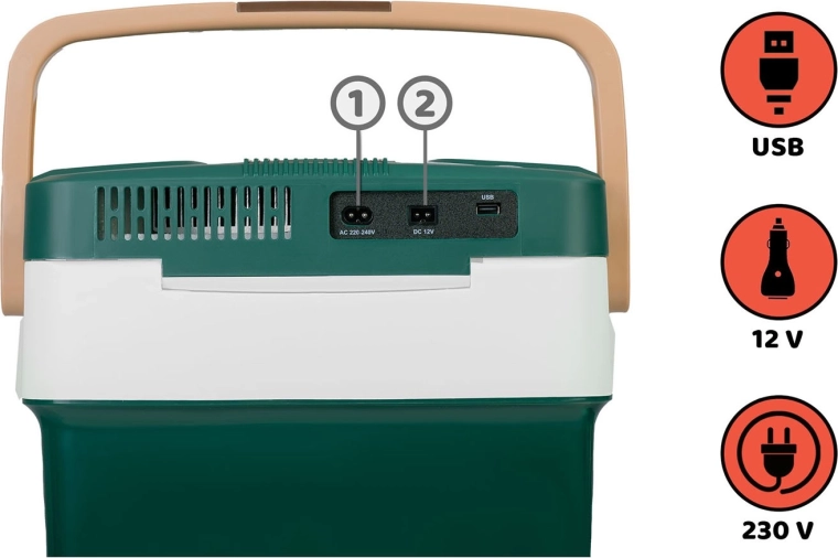 La commande est extrêmement simple : le panneau électronique avec afficheur permet de régler précisément la température et de basculer entre les modes ECO et Normal. L’alimentation via la prise 12 V de la voiture ou le secteur 230 V assure une flexibilité totale à la maison comme en déplacement. Un port USB est en outre présent pour recharger aisément un téléphone ou une tablette pendant le trajet.