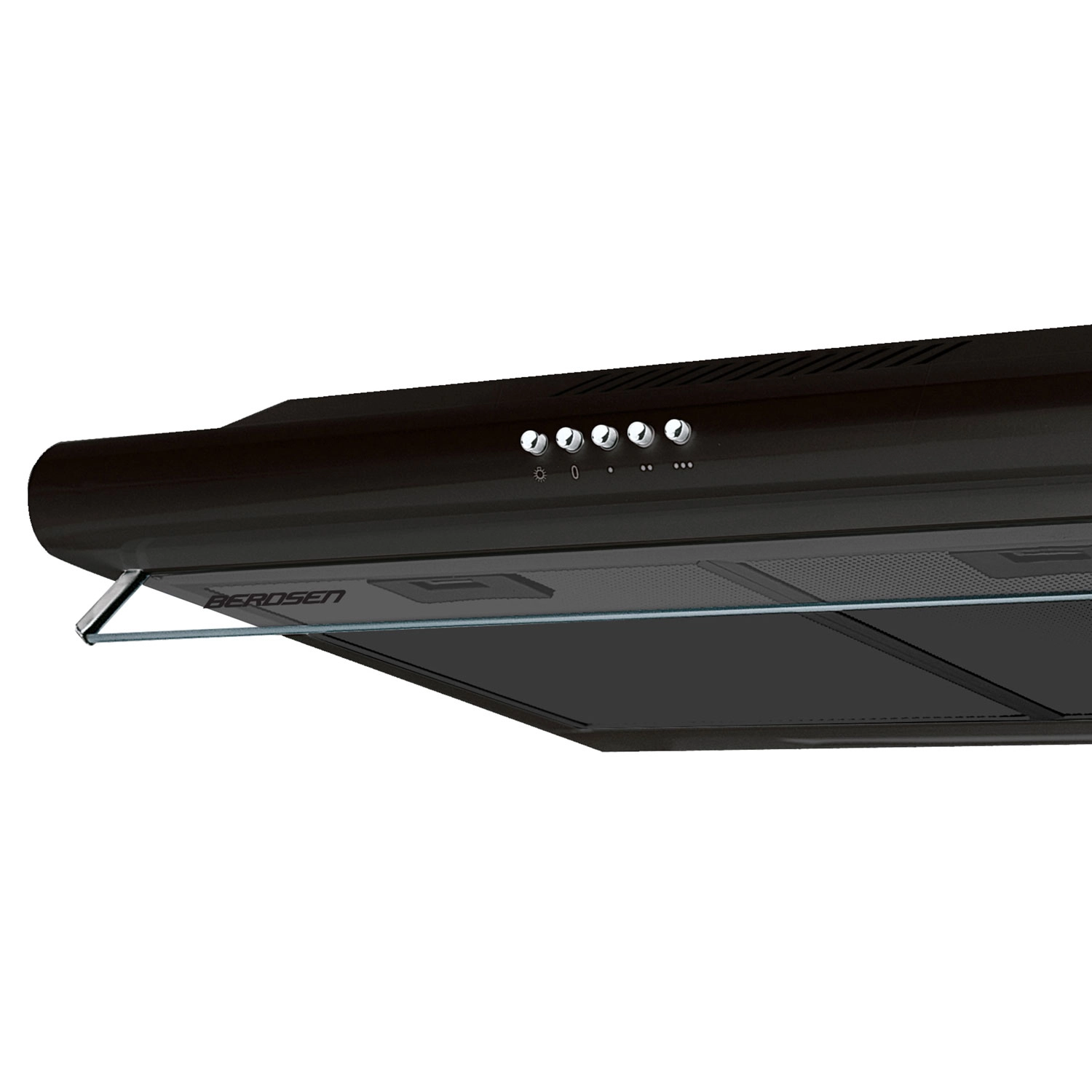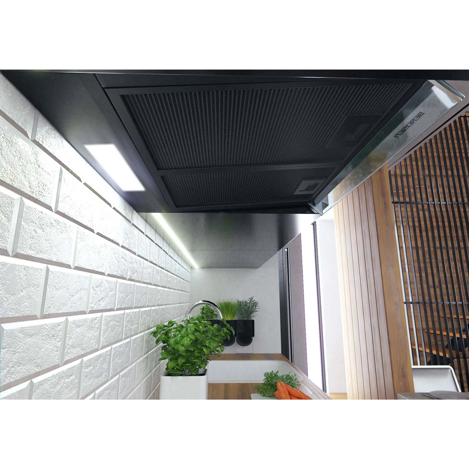 La hotte aspirante BERDSEN 60 cm en acier inoxydable noir capte efficacement les vapeurs et les odeurs au-dessus de la table de cuisson. Grâce à sa construction fine, elle convient sous un meuble ou pour un montage direct au mur. Le panneau frontal en verre souligne le look moderne, l’éclairage LED intégré offre une visibilité claire pendant la cuisson et le filtre aluminium à 5 couches retient de manière fiable les graisses.