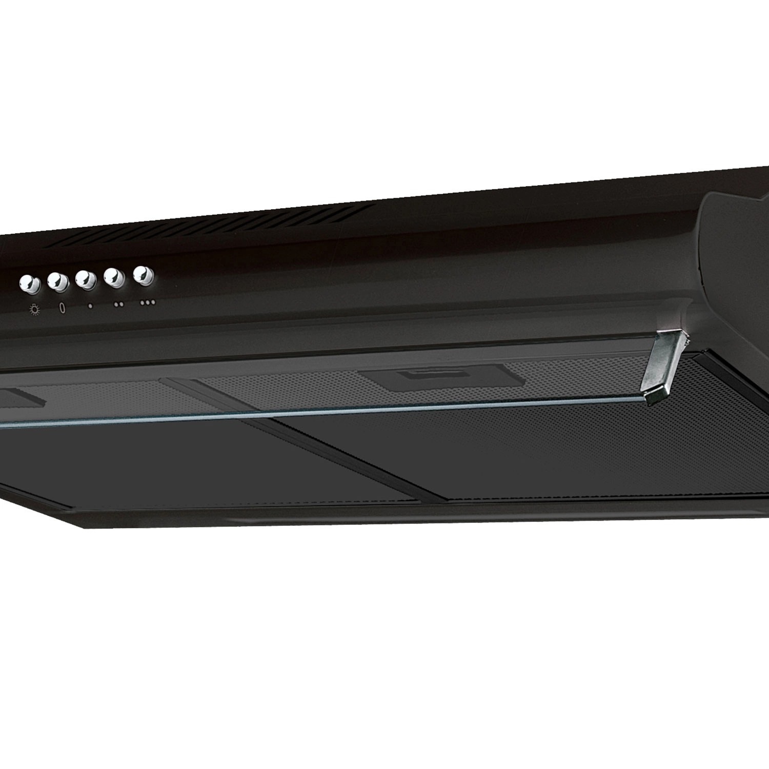 Le profil bas et la finition en inox noir avec panneau en verre s’harmonisent parfaitement avec les ensembles modernes et classiques tout en économisant l’espace sous le meuble.