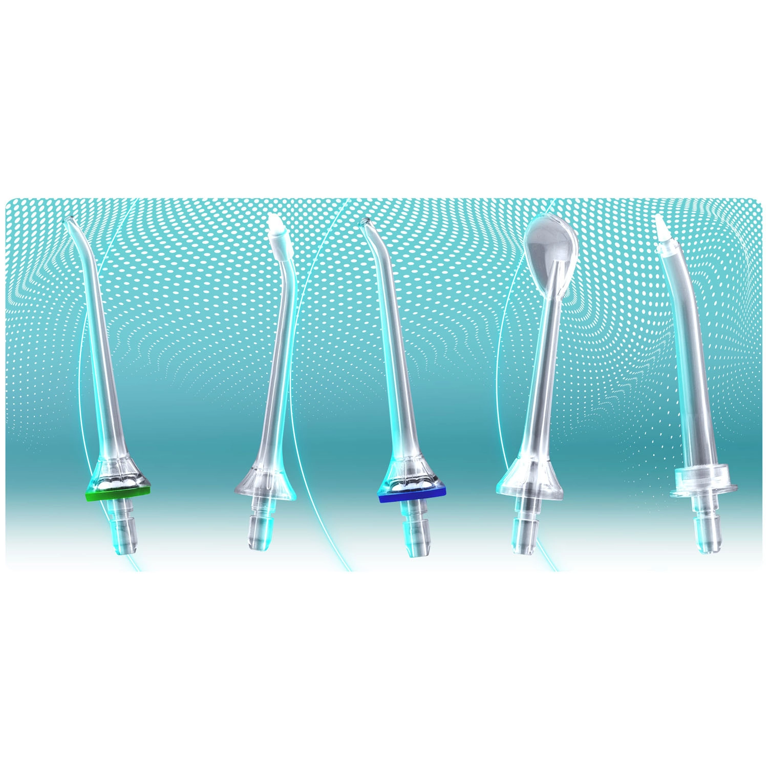 Choisissez Strong, Normal, Soft, Pulse ou Child et réglez la pression d’eau idéale. Le mode Pulse atteint jusqu’à 1800 pulsations/min pour une efficacité maximale, tandis que les modes doux protègent les gencives sensibles et la dentition des enfants.