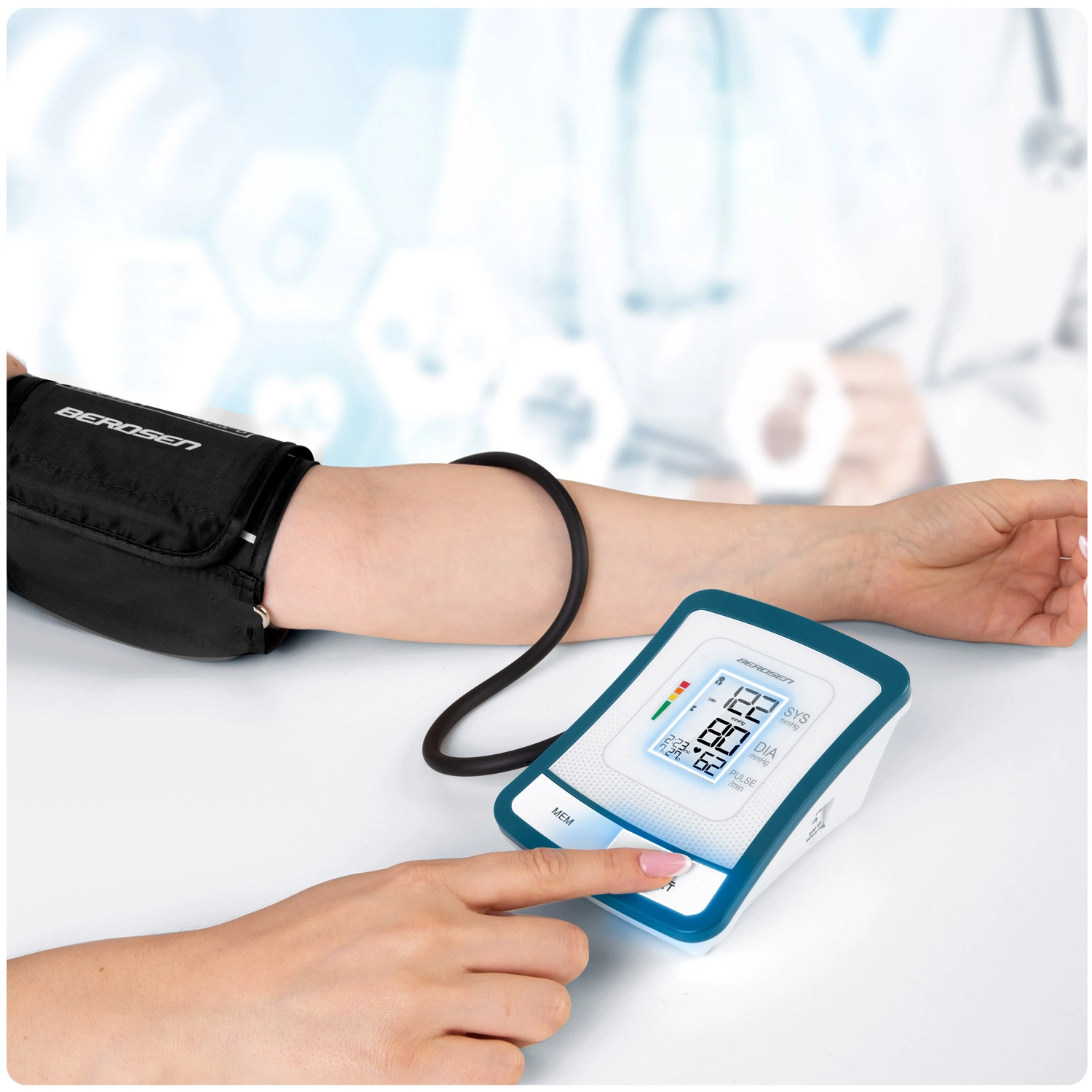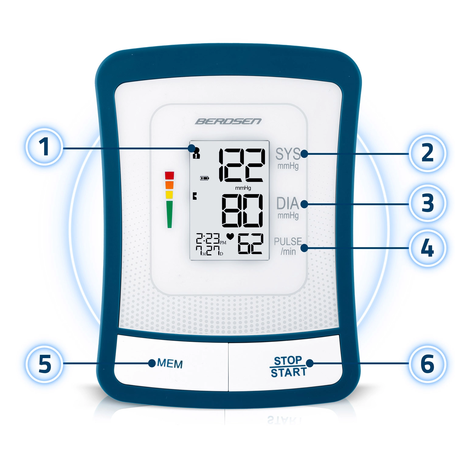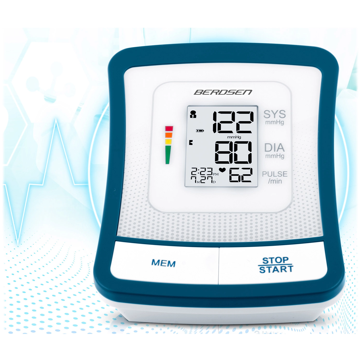 Le tensiomètre BERDSEN BD-120 est un allié fiable pour le contrôle quotidien de la santé. Grâce au grand écran LCD affichant clairement la systole, la diastole et le pouls, vous voyez les résultats immédiatement et sans effort. L’appareil signale les battements cardiaques irréguliers, dispose d’une signalisation sonore, de l’arrêt automatique et d’un indicateur de niveau de batterie.