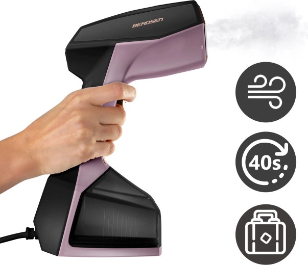 Le défroisseur à main BERDSEN puissant de 2000 W offre un débit de vapeur élevé de 45 g/min, un préchauffage en 10 secondes et un grand réservoir amovible de 360 ml. Il propose 3 niveaux de vapeur, un pilotage par un seul bouton, un écran LCD et des accessoires inclus. Idéal pour lisser rapidement les plis, désinfecter à la vapeur sans produits chimiques et rafraîchir les vêtements et textiles de la maison.