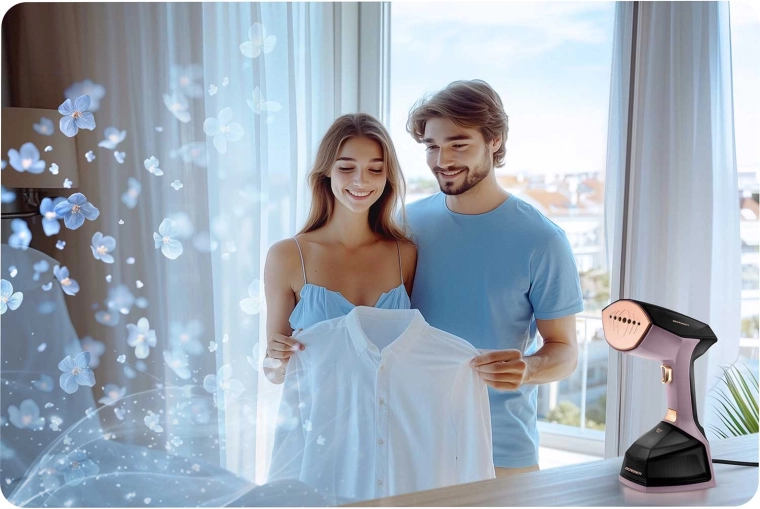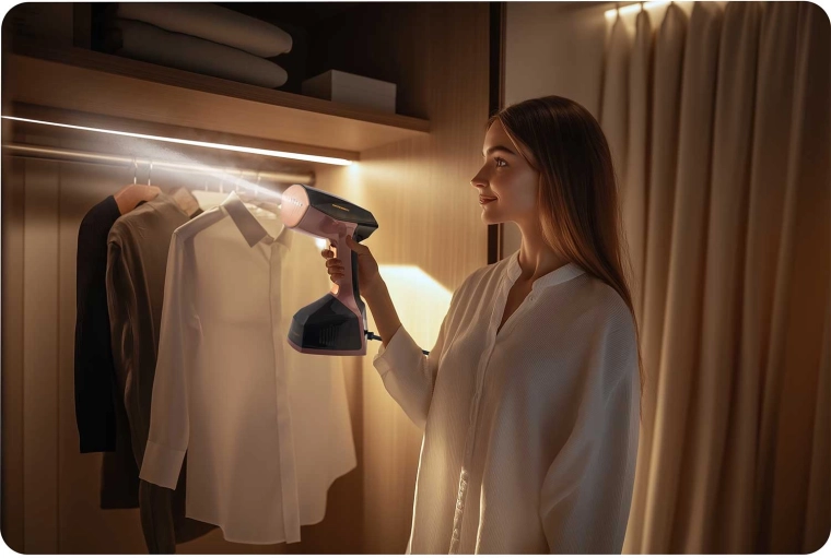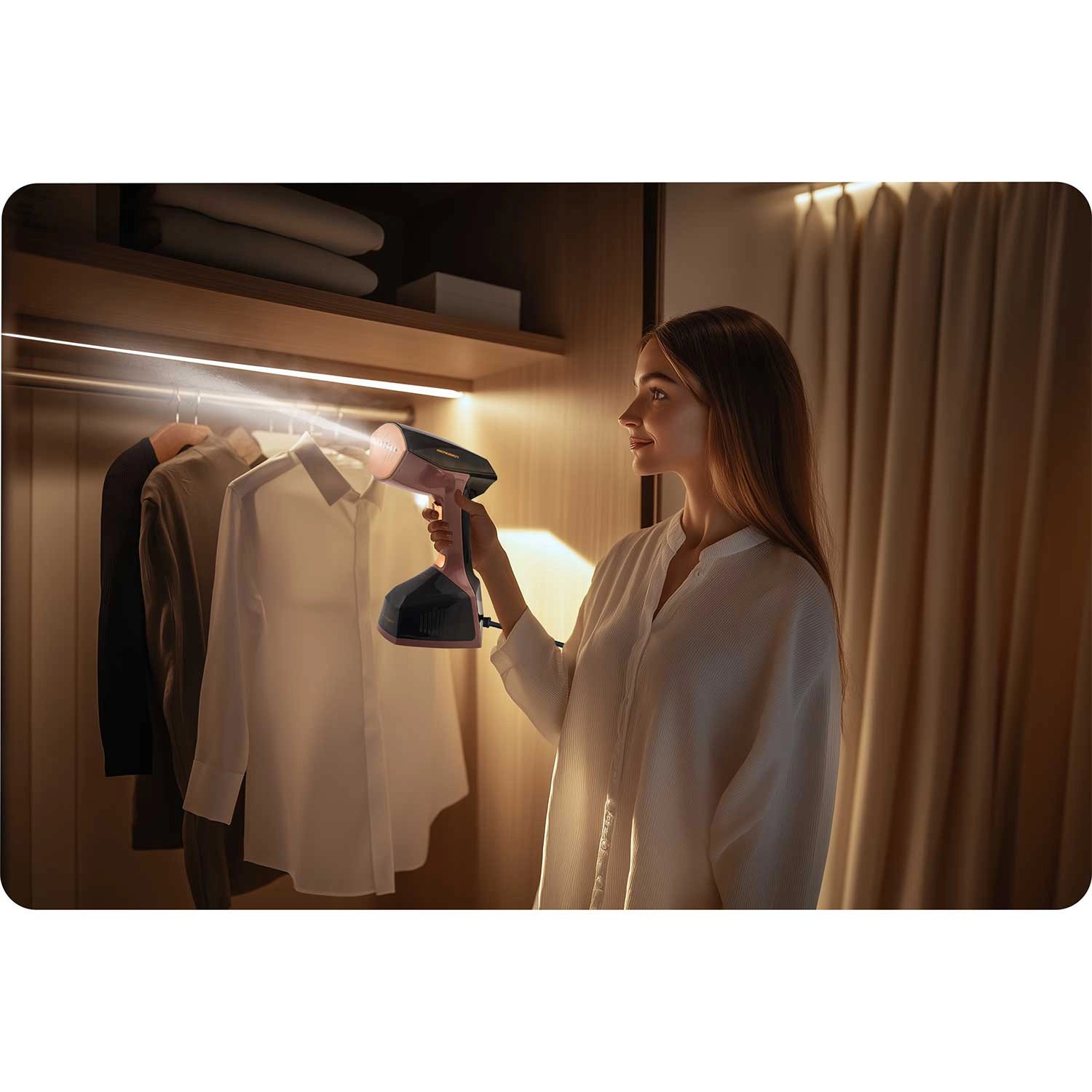 - Rafraîchissement rapide des vêtements – lisse immédiatement chemises, robes et vestes directement sur cintre.