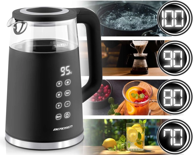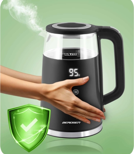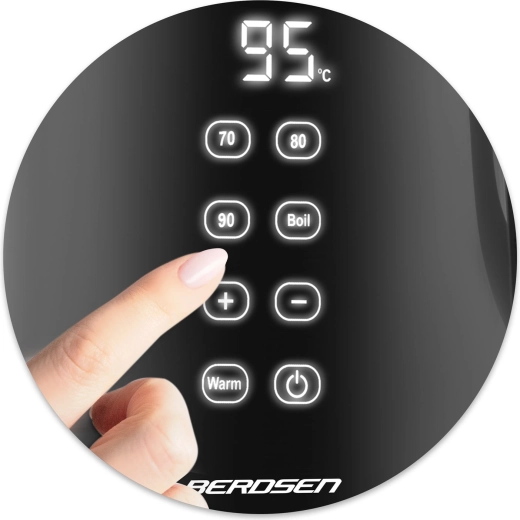 Profitez d’un contrôle parfait de la préparation du thé et du café. La bouilloire BERDSEN offre un pilotage tactile avec affichage lisible, le choix de quatre températures pour différents types de boissons et une fonction Warm pour maintenir facilement la chaleur jusqu’à 2 heures. Grâce à la combinaison de verre trempé et d’acier inoxydable SUS 304, l’eau reste pure et sans odeurs indésirables.