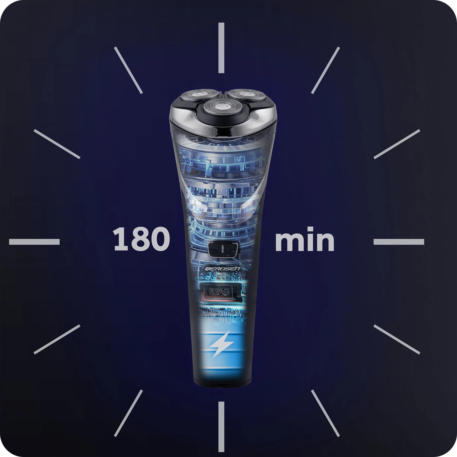 Le rasoir électrique BERDSEN de la gamme Barber Master est idéal pour l’entretien quotidien de la barbe. Il offre un moteur puissant, des têtes rotatives en acier pour un rasage doux, un écran LCD avec indicateur de batterie et une charge USB‑C rapide. Grâce à sa batterie de 2000 mAh, il assure jusqu’à 3 heures d’autonomie et convient au rasage à sec ou sur peau humide.